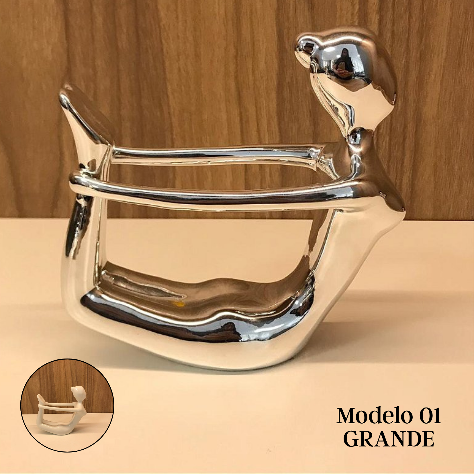 Disponíveis nas cores branco, prata, rosé e dourado, e em dois tamanhos Grande 17cm e Mini 10cm, cada peça combina perfeitamente com diferentes estilos de decoração, do minimalista ao sofisticado, adicionando um toque artístico e elegante ao espaço.